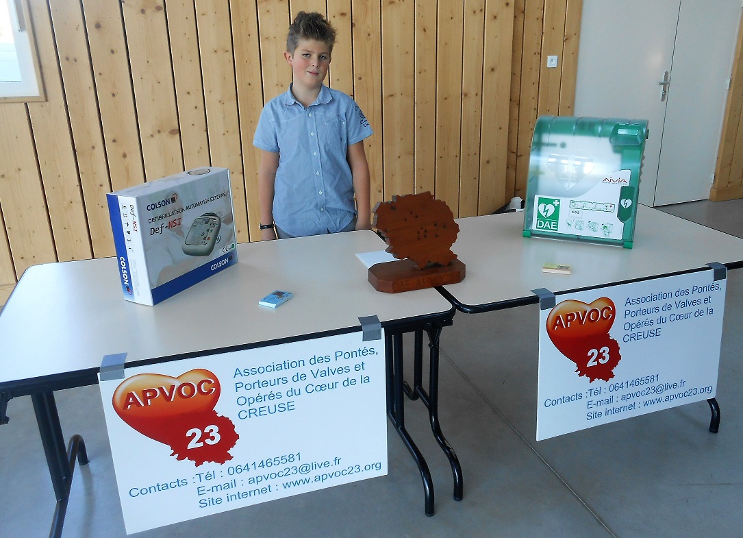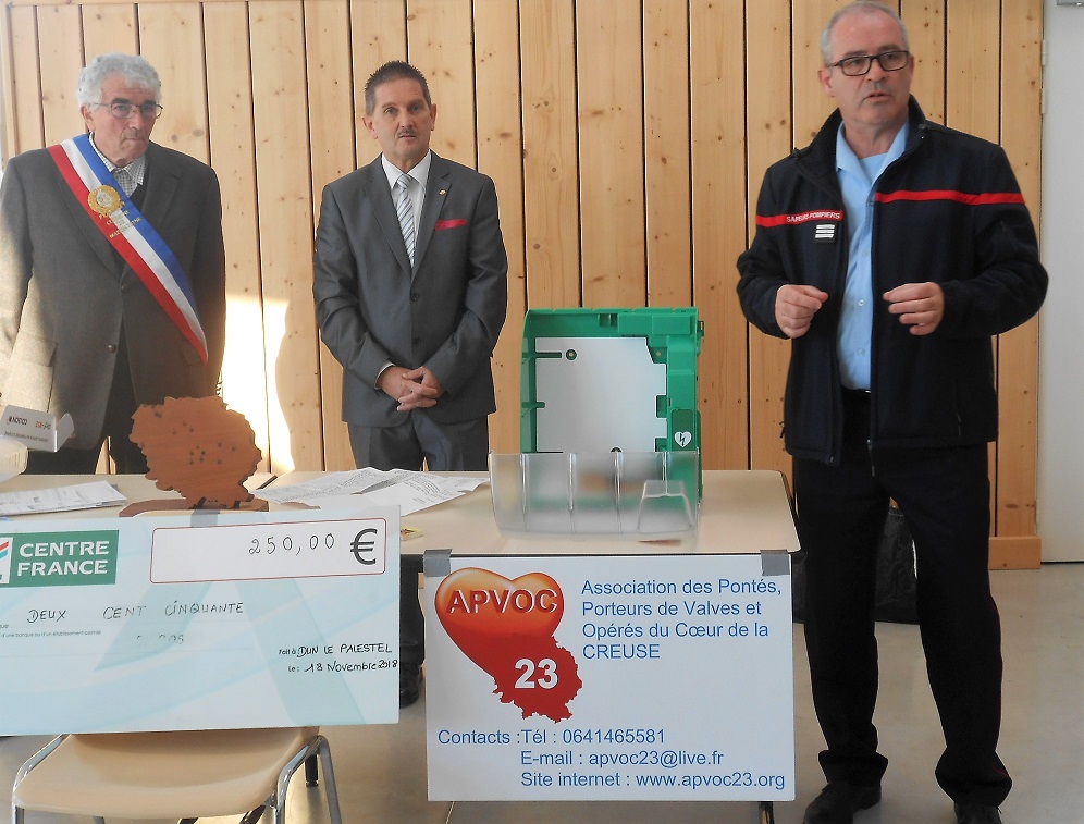Alors quoi de plus réconfortant pour Éric et son épouse Hélène de pouvoir venir remettre à cette commune, au nom de l’APVOC 23, avec la participation de la Caisse locale du Crédit Agricole du pays Dunois, un défibrillateur cardiaque tout en se remémorant leur vie 12 ans en arrière avec toutes les peurs et les angoisses qu’ils avaient du endurer avant d’être sûrs que leur fils allait s’en sortir et vivrait comme tous les enfants de son âge.