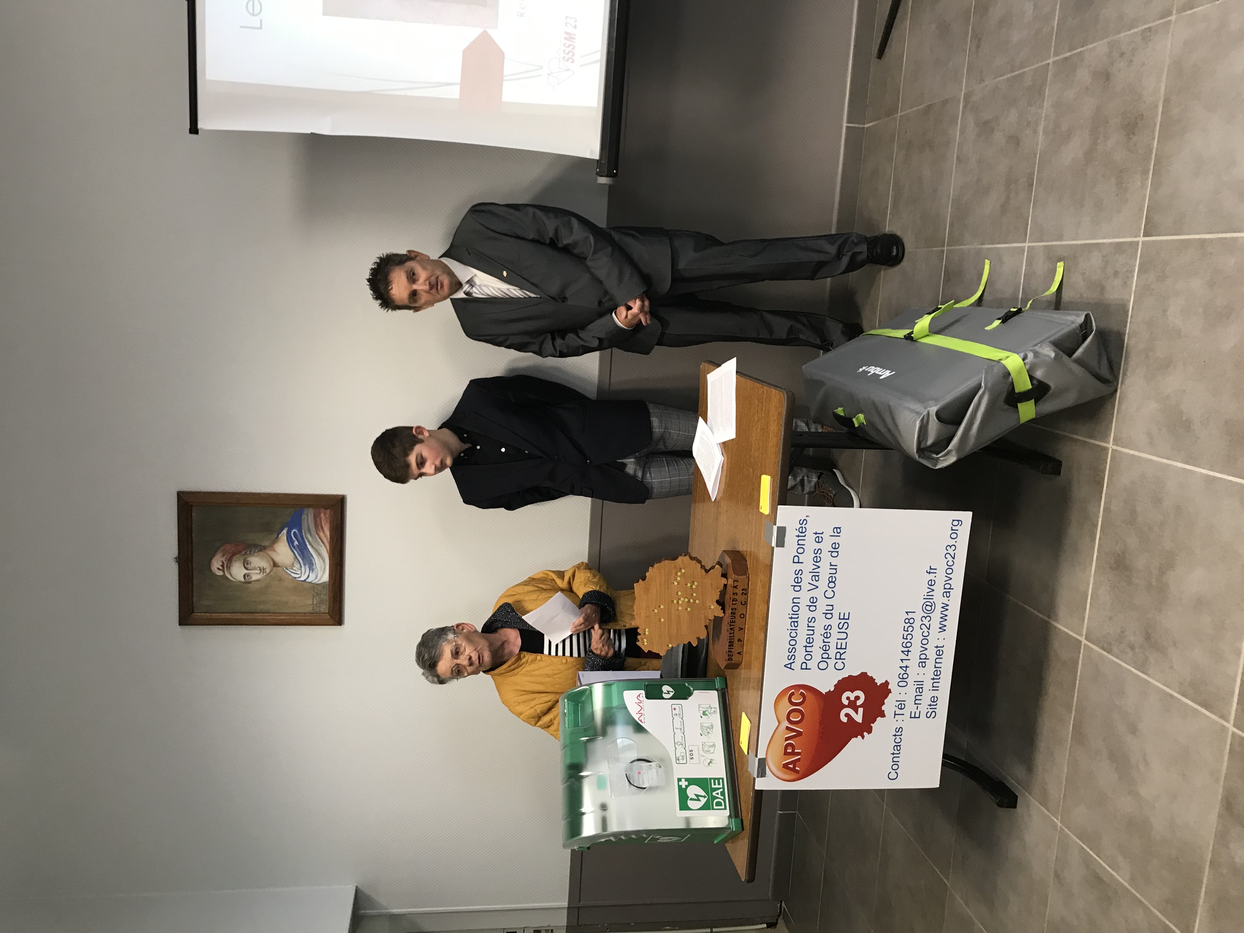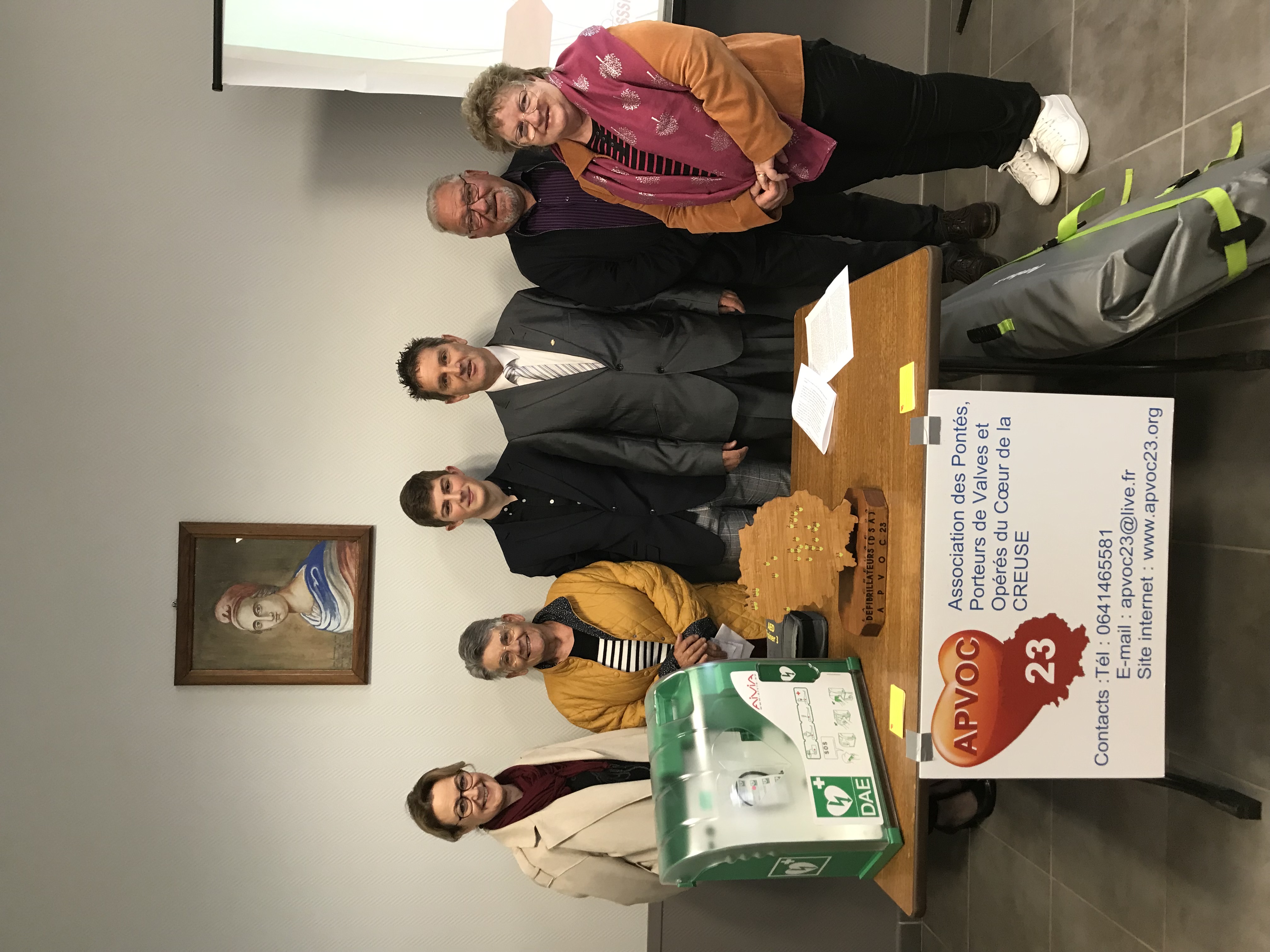 Ce n’est pas sans une certaine émotion qu’Éric SKRABAN, Président de l’APVOC 23 (Association des Pontés, Porteurs de Valves et Opérés du Cœur de la Creuse) est revenu à La Serre Bussière Vieille, sa commune d’enfance, pour y remettre le 27 ème défibrillateur cardiaque. Il était accompagné de Claude LEPRINCE, son vice-président. Tous deux étaient ravis d’accueillir Madame Valérie SIMONET, Présidente du Conseil Départemental qui elle aussi ne venait pas en terre inconnue !